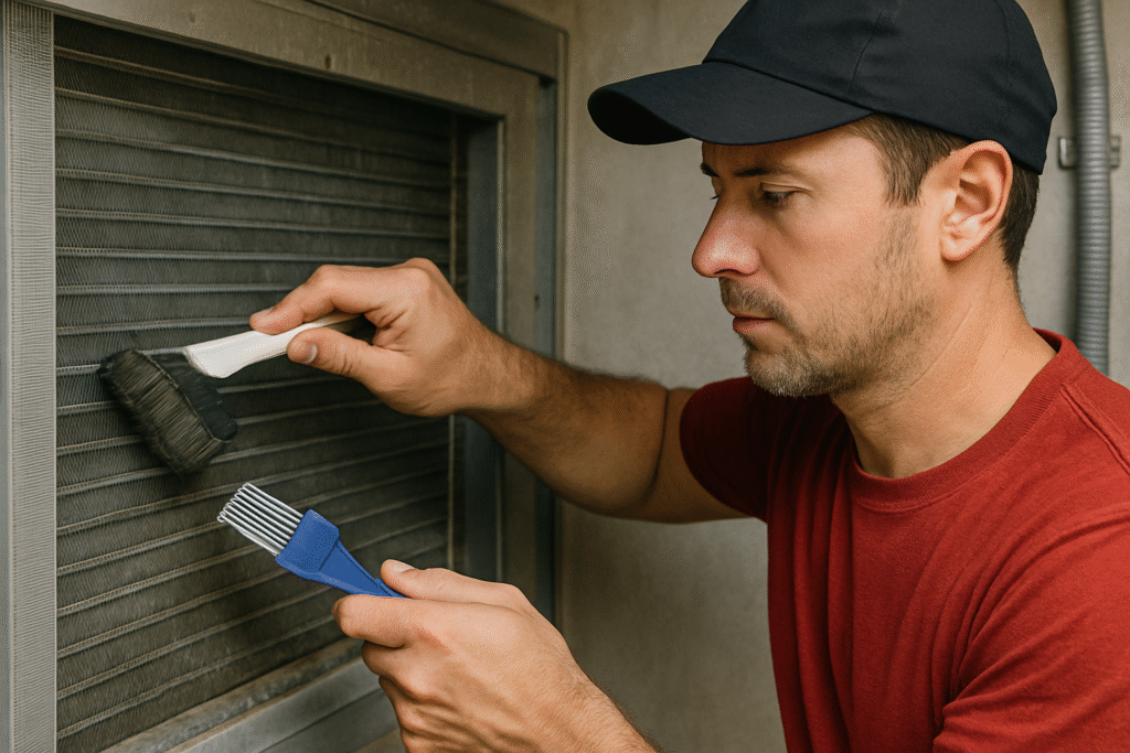 Our technicians use specialized tools to clean AHU coils and straighten fins, restoring maximum cooling performance .
